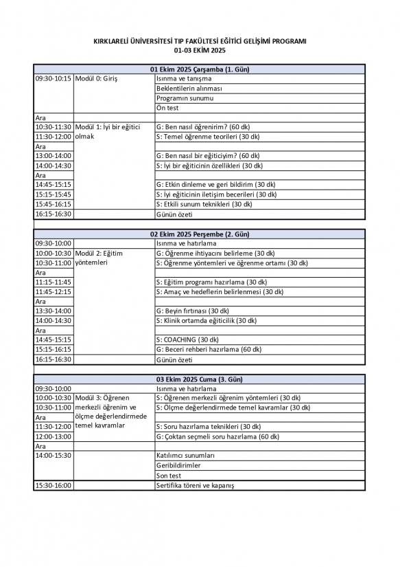 2025-2026 Tıp Fakültesi Dönem-3 Eğitim Planı
