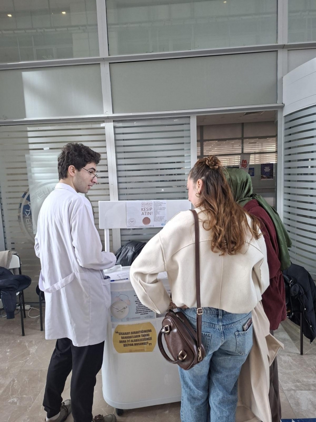 Kırklareli Üniversitesi Tıp Fakültesi Halk Sağlığı Anabilim Dalı Dr. Öğr.Üyesi Nehir YÜKSEL yürütücülüğünde gerçekleşen "Tütünsüz Kampüs: Sigara Farkındalığı ve Bırakma Etkinliği" sosyal sorumluluk projesi Dönem 1 Tıp Fakültesi Öğrencilerimizin uygulamaları Üniversitemiz öğrenci ve personelinin katılımlarıyla gerçekleşmiştir. Etkinlikte sigara içen kişilerde sigara bağımlılığı derecesi tespit edilmiş, solunum havasındaki karbonmonoksit düzeyleri ölçülmüş, konu ile ilgili bilgi verilmiştir. Üniversitemiz öğrencileri ve personeli Sigara Bırakma Polikliniklerine yönlendirilmiştir.